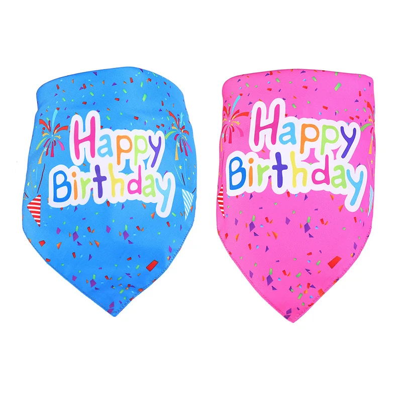 Name: Perro gato ambos lados baberos Bandana Feliz cumpleaños Bandanas perro bufandas Baberos con forma triangular ajustable pañuelo 66*45*45cm